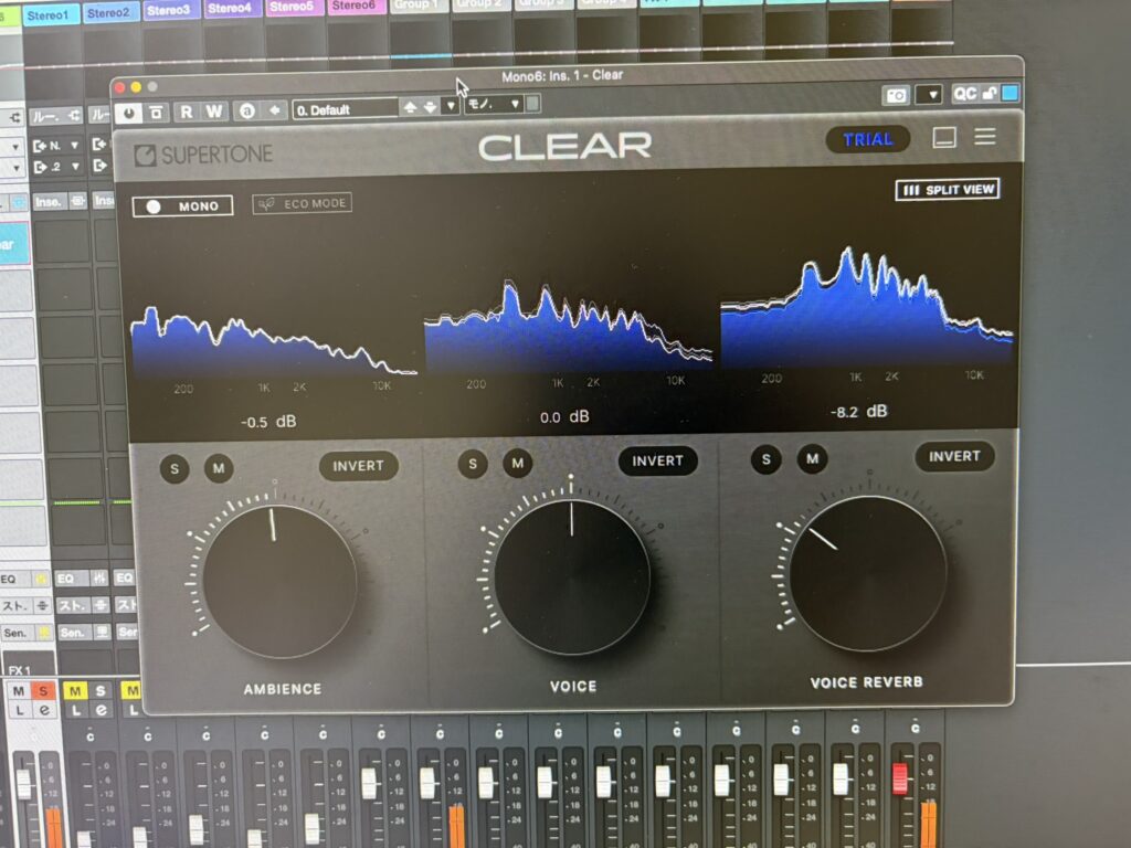 今回はコレに助けられました。1か月前に作業した案件に、急遽差し替えというか「部屋の残響が気になる、、」との指摘があり、ミックスの直しをすることになりました。さー困った!残響をコントロールするのは難しいのでは?当然、付け加えるのは簡単ですが、消すのはね、、、と思うもののあれこれやった結果やっぱりうまくいきません。そこでネット上にあったプラグインをお試しでダウンロード。コレ使えます!SUPERTONEって韓国のメーカーみたいです。ナレーションの音質を保持したままバックの残響をコントロールできます。エキスパンダーやゲートと違いエッジの部分も不自然ではありません。エクセレンス!購入しても1万円程度なので購入したかったのですが、この直し案件に予算はついてないだろう、、との思いから躊躇してしまいました。ですが、将来きっと買うと思います。ありがとう!SUPERTONE!